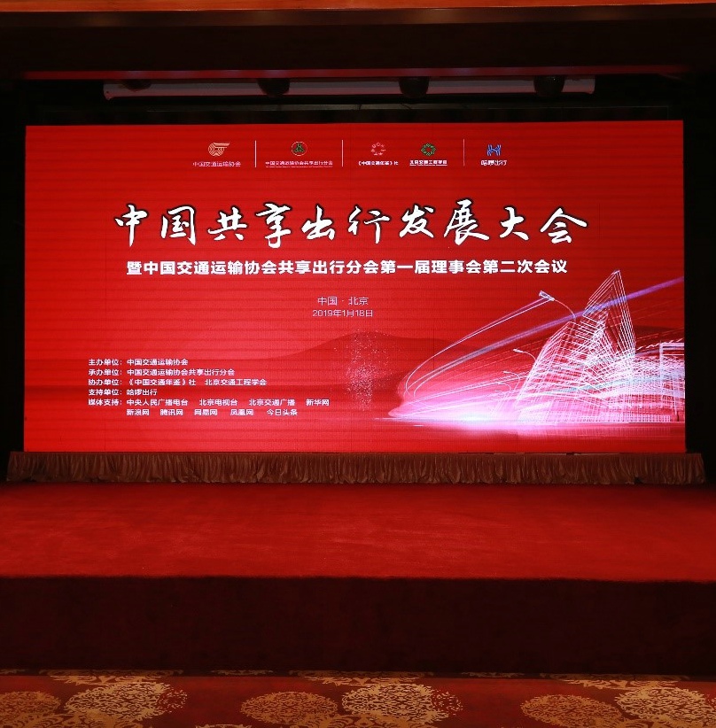 2019年1月18日,由中国交通运输协会主办,中国交通运输协会共享出行分会承办的第二届“中国共享出行发展大会”在北京隆重召开。